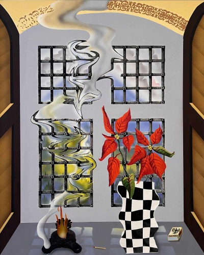 Melissa Brown’s still lifes are as clear and simple as they are enigmatic, featuring various elements that suggest a metaphysical sphere, initially challenging to understand. The subject and context are recognizable, she is American but fascinated by Italy, particularly Trento, where she recently visited. There, she encountered different elements and flowers that captivated her; upon returning home, she continued to depict them in her works. So, her art blends American and Italian influences, serving as a tribute to the city of Trento.