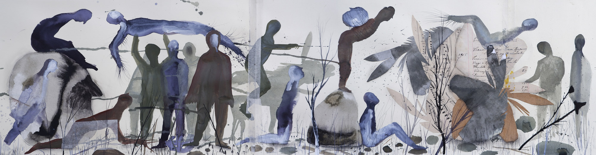 Denis Riva, Attendere un nuovo giorno, mixed media on paper, 32 x 118 cm