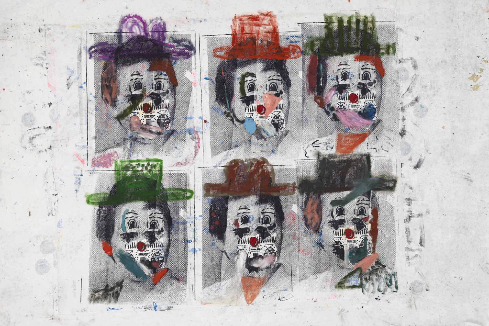 Bäst, Sei cappelli, mixed media on canvas, 141 x 212 cm