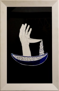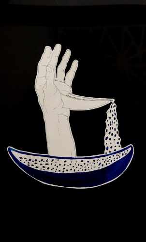 Durante il viaggio, l’animale diviene un’imbarcazione da cui non è possibile evadere, e tuttavia salvifica: La mano e il contenitore, richiamo al ciclo vitale che si perpetua in eterno, portano questo concetto a un’estrema sintesi: David Aaron Angeli unisce l’oggetto alla figura umana, accentuando, attraverso un asciutto linguaggio figurativo, un’ambivalenza tra “portatore” e “portato” in cui l’interesse dell’artista è concentrato soprattutto sull’incontro e sulla relazione spirituale che si consuma nell’ attraversamento del mare.