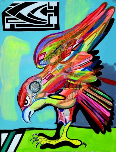 Tra i soggetti più frequenti nella sua iconografia c’è l’aquila, simbolo dell’America e della società in cui vive.